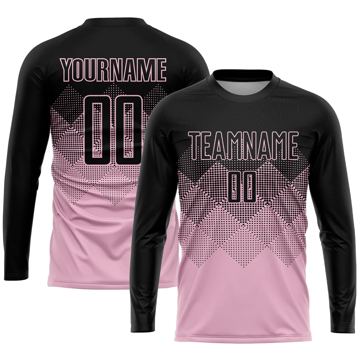 Custom Light Pink Black Sublimation Soccer Uniform Jersey