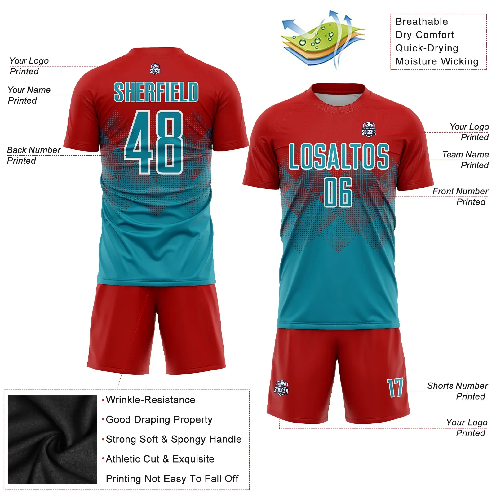 Custom Red Teal-White Sublimation Soccer Uniform Jersey
