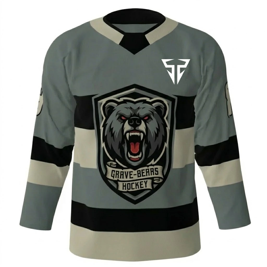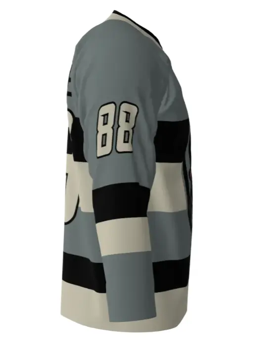Play like a pro with this long-sleeve hockey jersey. The Draugrs Gray Hockey Jersey features a long-sleeve design that gives you more ease and comfort during games and practice. It allows you full arm movement which makes it perfect for training and playing. Its unique design features a steel gray body with cream and black striped details on the sleeves and bottom. This comfortable jersey is perfect to wear both for games and casual wear.