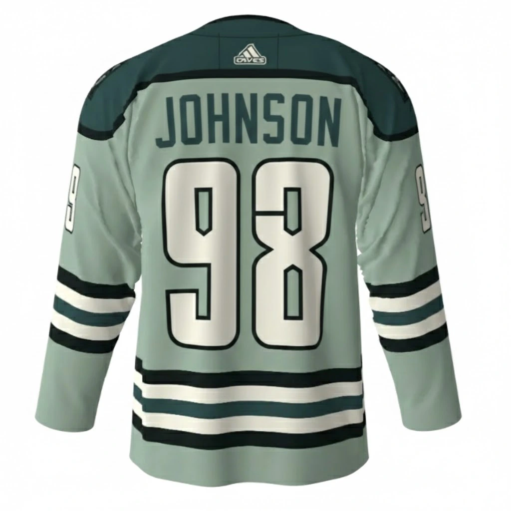 Its cool striped pattern with green, black, and cream gives it a unique and mysterious look. The standout hooded reaper graphic on the front makes an immediate visual impact and creates an intimidating presence on the ice. The team name and player number are written in BOLD letters on the jersey. It will give you a professional look. The dye sublimation process is used for printing. This advanced permanent method ensures the design will not crack, peel, or fade, regardless of how many games, practices, or washes it endures.