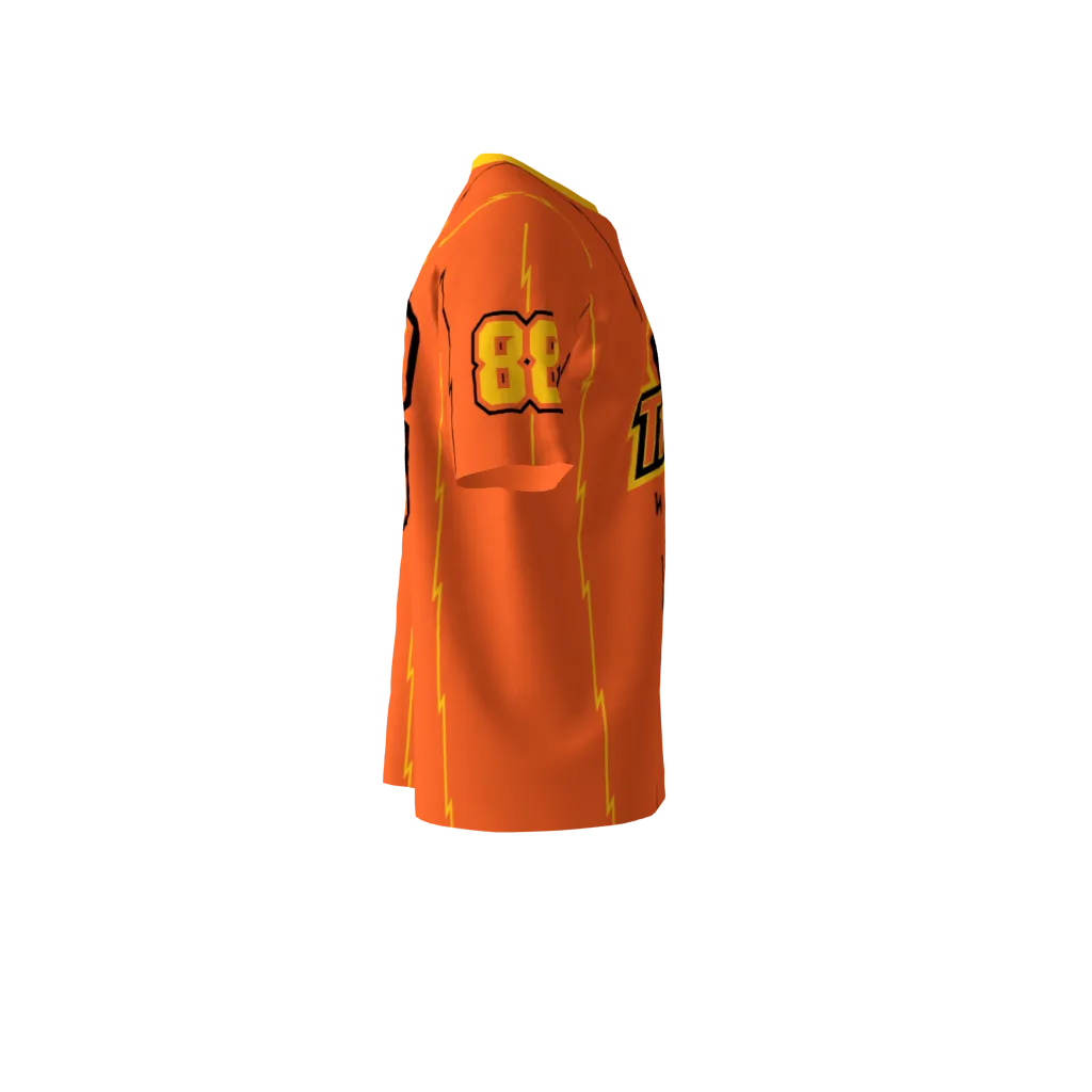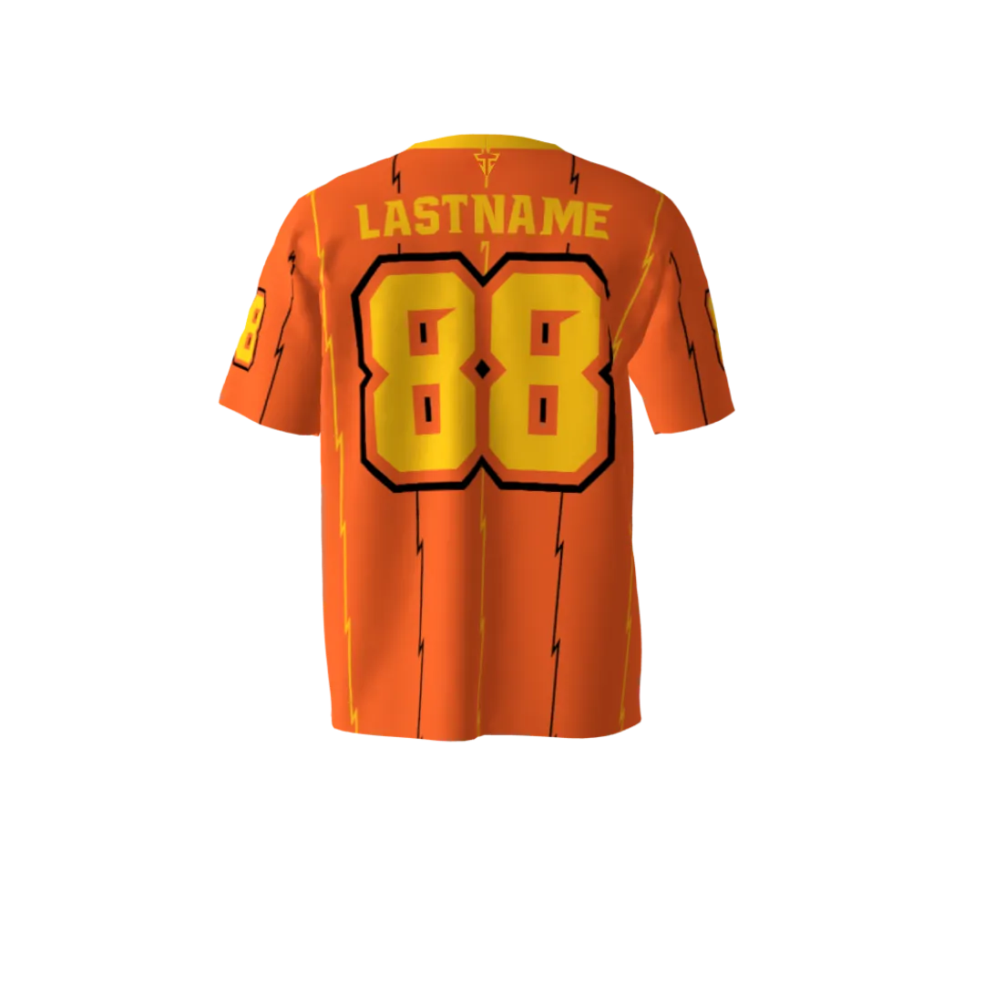 Expertly crafted from a premium, breathable performance fabric, this jersey ensures a lightweight and comfortable feel. It effectively helps keep players cool and dry during intense games or demanding practice sessions. The striking Thunder Orange design is vividly brought to life using advanced sublimation printing. This process permanently infuses all colors and intricate details directly into the fabric fibers. This means the design will not crack, peel, or fade, regardless of how many slides, dives, or washes it endures. This jersey is built to maintain its sharp, dynamic appearance for a very long time.