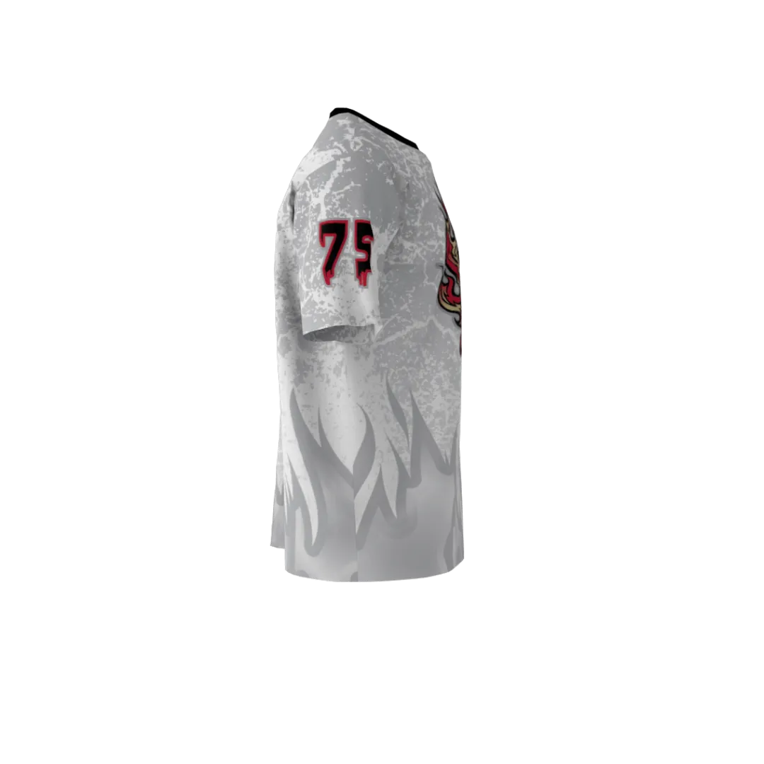 The intricate distressed textures, the vibrant flames, and the detailed ull graphic on this jersey are all vividly embedded into the fabric using dye sublimation. This advanced printing technique ensures that the entire design, from the light gray base and subtle wing patterns to the fiery central emblem, becomes a lasting part of the material. Unlike surface-level applications that are prone to cracking or peeling, sublimation guarantees that the jersey’s powerful visuals will remain sharp and true, resisting fading or damage even after the most intense games, challenging slides, or countless washes. The enduring visual impact of this jersey will consistently reflect your team’s unyielding performance.