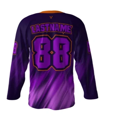 Show your team spirit with the Rapture Purple Hockey Jersey. Its long-sleeve design gives you more ease and comfort. It allows you full arm movement which makes it perfect for skating and playing. Its modern athletic look with vibrant purple and orange colors gives you another level of confidence. This comfortable jersey is perfect to…