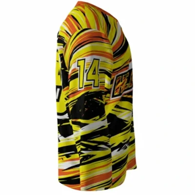 Play like a pro with this long-sleeve hockey jersey. The Rolling Heatwave Hockey Jersey features a long-sleeve design that gives you more ease and comfort during games and practice. It allows you full arm movement which makes it perfect for training and playing. The bold “ROLLING HEATWAVE” text with dynamic wavy stripe pattern in yellow,…