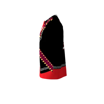 Transform your team’s on-field presence into a vibrant fiesta with the captivating Mariachi Softball Jersey. This is no mere uniform; it’s an artistic, custom-designed garment meticulously crafted for both exceptional comfort and peak performance during every game. Featuring a striking black base adorned with intricate red and gold patterns, a bold red bow tie, and…